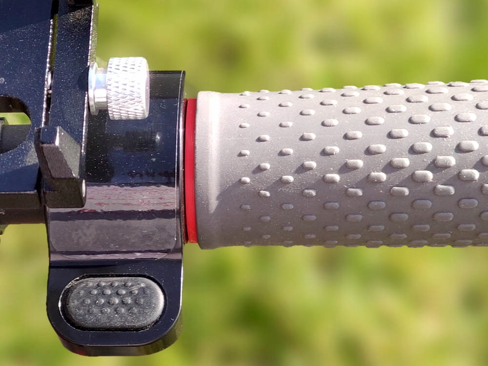 Zablokowanie manetki gazu przez dociśniętą do niej gumową rączkę może być bardzo niebezpieczne. Między manetkę a rączkę zakładamy dystans który zabezpiecza przed blokowaniem.