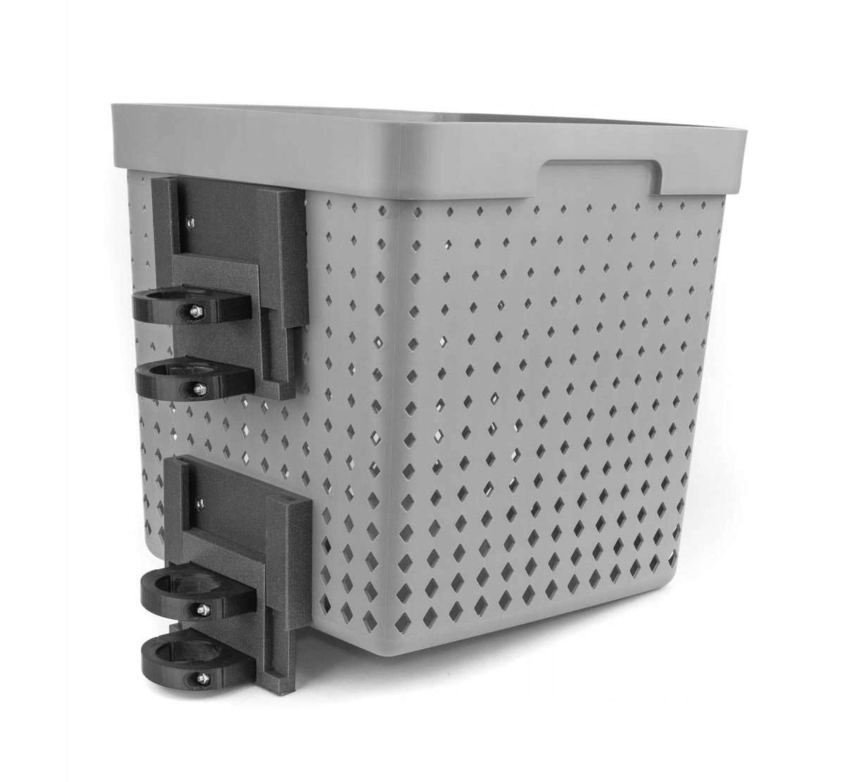 (Zdjęcia przedstawiają kosz zamontowany na przykładowej hulajnodze innej marki. Sprzedawany produkt jest dostarczany z kompletem obejm dostosowanych do hulajnogi podanej w opisie oferty)