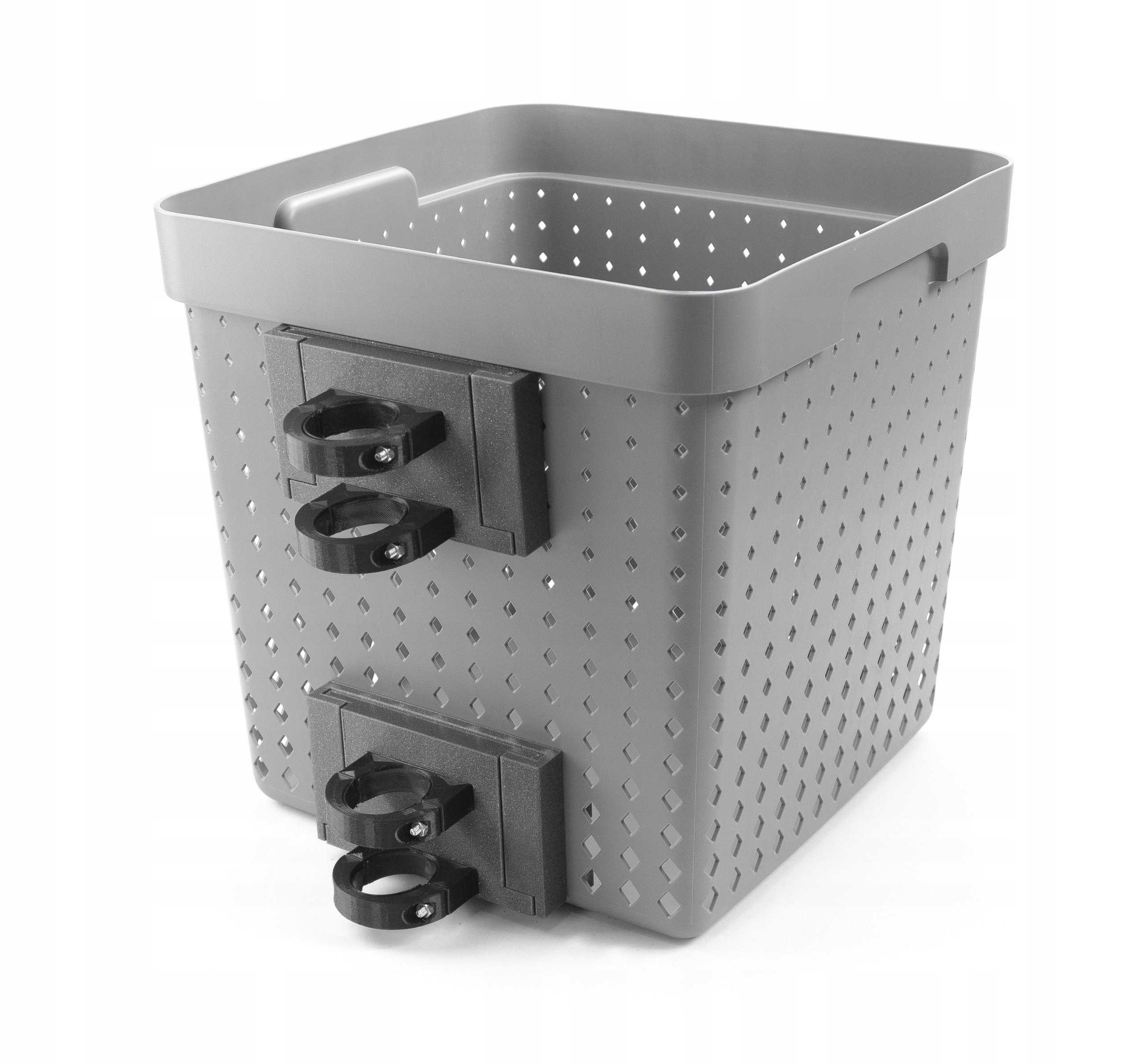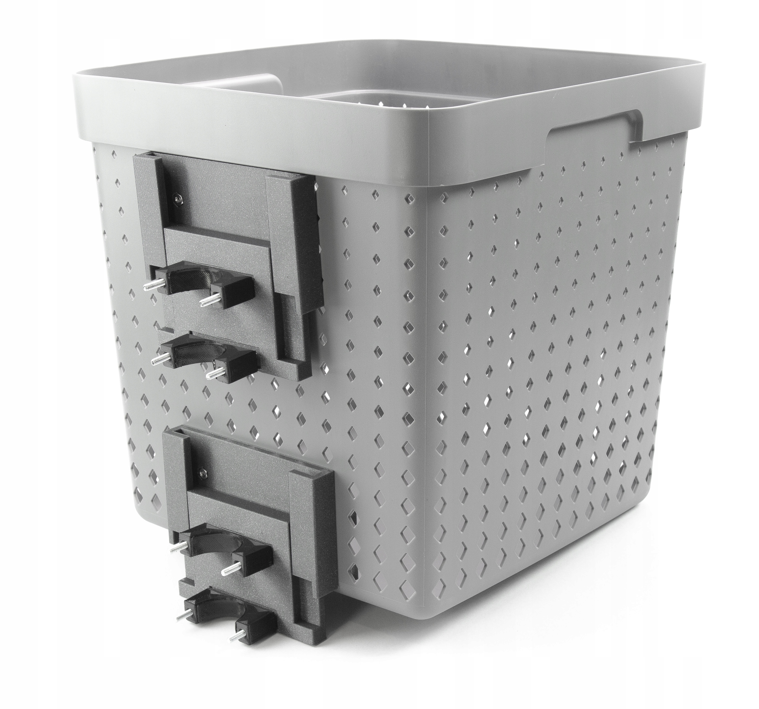 Przykręcasz na stałe tylko raz jedne części uchwytu a kosz zakładasz kiedy chcesz.