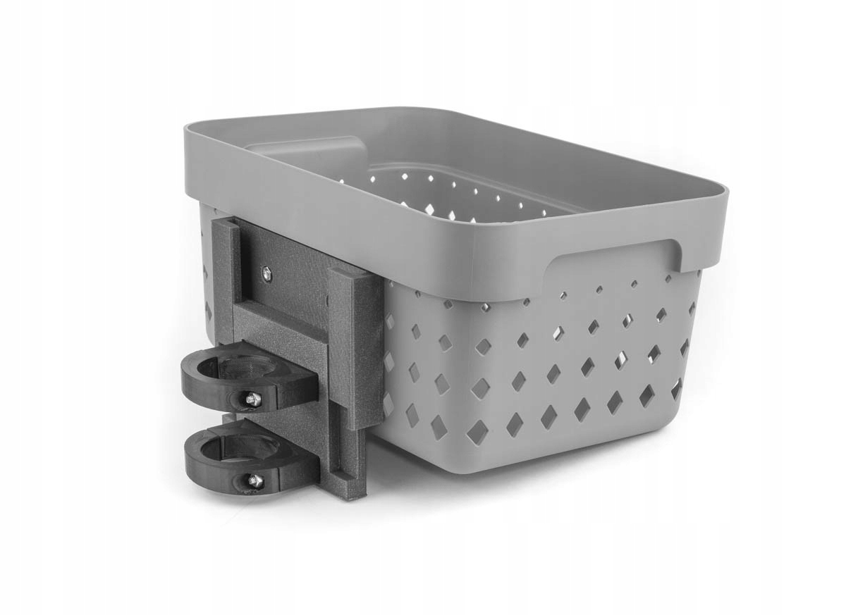 (Zdjęcia przedstawiają kosz zamontowany na przykładowej hulajnodze innej marki. Sprzedawany produkt jest dostarczany z kompletem obejm dostosowanych do hulajnogi podanej w opisie oferty)
