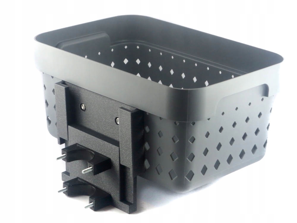 (Zdjęcia przedstawiają kosz zamontowany na przykładowej hulajnodze innej marki. Sprzedawany produkt jest dostarczany z kompletem obejm dostosowanych do hulajnogi podanej w opisie oferty)