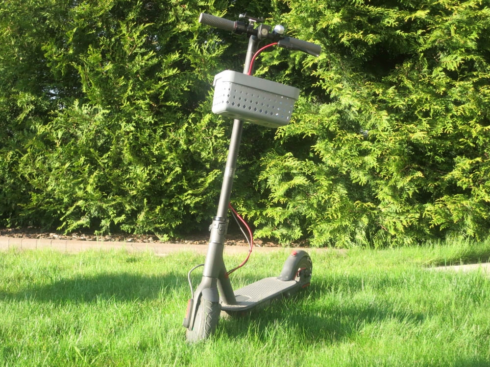 (Zdjęcia przedstawiają kosz zamontowany na przykładowej hulajnodze innej marki. Sprzedawany produkt jest dostarczany z kompletem obejm dostosowanych do hulajnogi podanej w opisie oferty)
