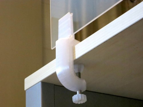 - bardzo prosty i szybki montaż - przykręcamy bezinwazyjnie uchwyty do blatu a następnie wsuwamy plexi w szczeliny dwóch uchwytów, które ściskają plexi i tworzą jej podstawę.