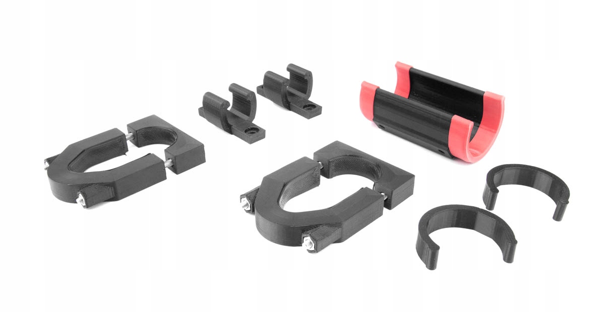 Elementy które bezpośrednio stykają się z kierownicą (obejmy) są od środka wyłożone GUMĄ w kolorze czarnym. Dzięki temu nie musimy martwić się o porysowanie kierownicy, a same gumki są niewidoczne.