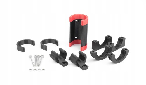 Każdy uchwyt składa się z 3 części, dwóch obejmujących kierownicę oraz jednego w który wkłada się U-LOCKa