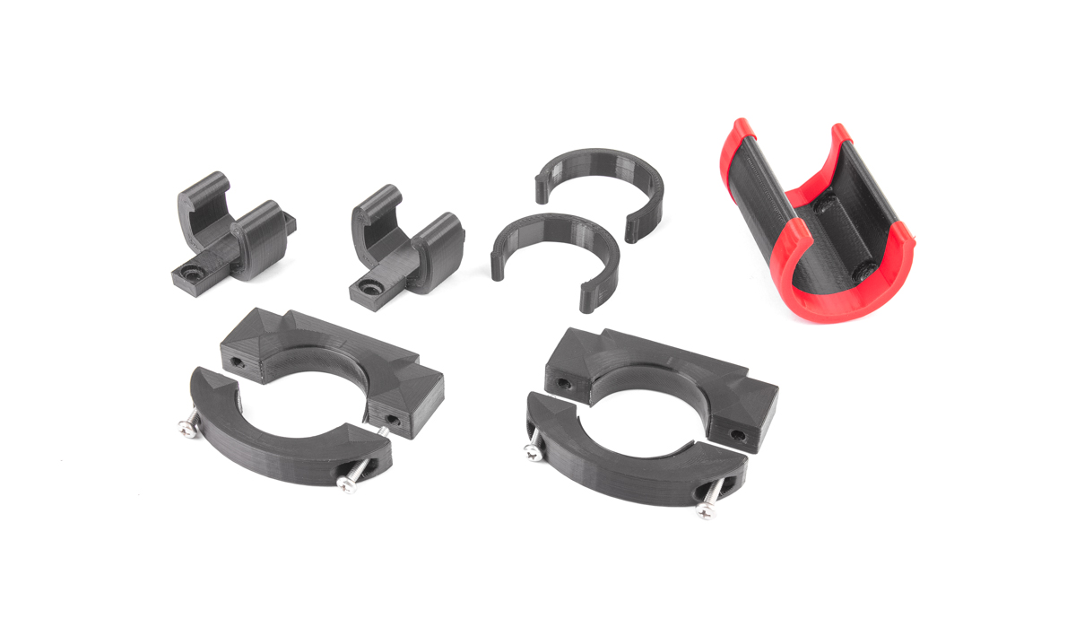 Elementy które bezpośrednio stykają się z kierownicą (obejmy) są od środka wyłożone GUMĄ w kolorze czarnym. Dzięki temu nie musimy martwić się o porysowanie kierownicy, a same gumki są niewidoczne.
