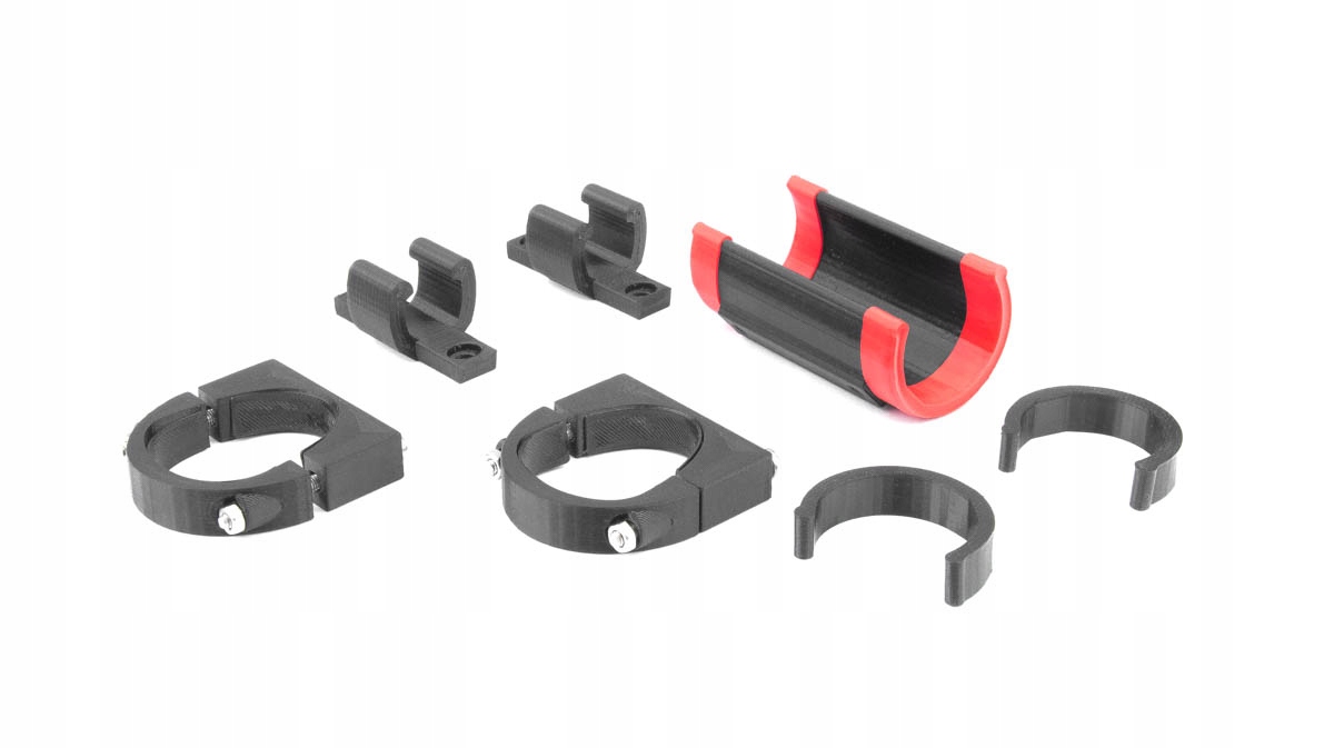 Elementy które bezpośrednio stykają się z kierownicą (obejmy) są od środka wyłożone GUMĄ w kolorze czarnym. Dzięki temu nie musimy martwić się o porysowanie kierownicy, a same gumki są niewidoczne.