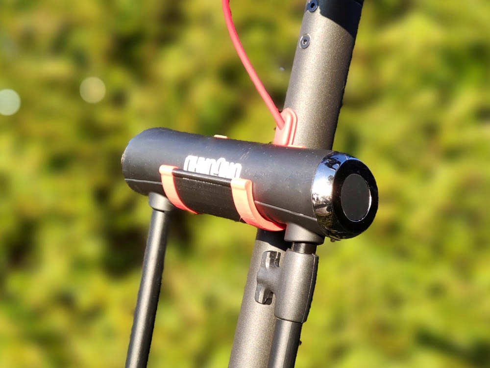 Teraz wygodnie i pewnie przewieziesz zabezpieczenie bezpośrednio na swojej hulajnodze, będziesz miał je zawsze przy sobie i nie odczujesz dodatkowej wagi i rozmiaru zabezpieczenia w plecaku lub torbie.
