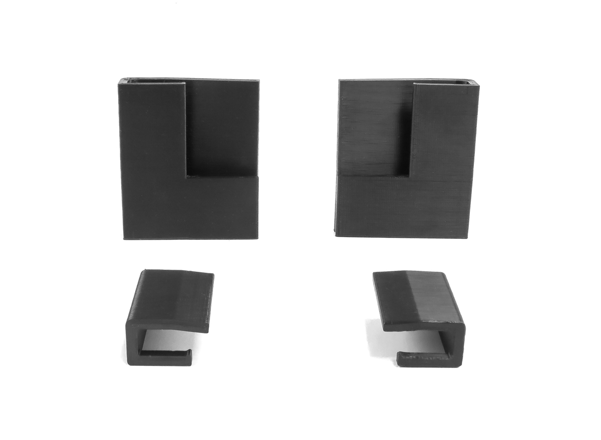 Klipsy A. - Klipsy montowane od zewnętrznej strony zawiasów, zapewniają dodatkowe wzmocniene mocowania zawiasów przy bocznej krawędzi ekranu.