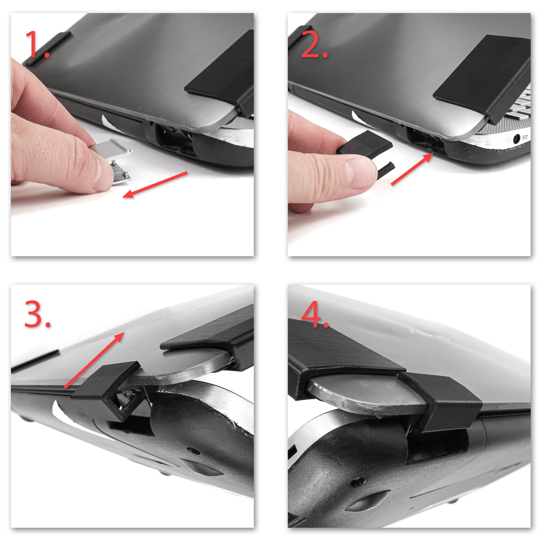 - Bez ingerencji w konstrukcję laptopa: brak wiercenia, klejenia i ryzyka uszkodzenia podzespołów