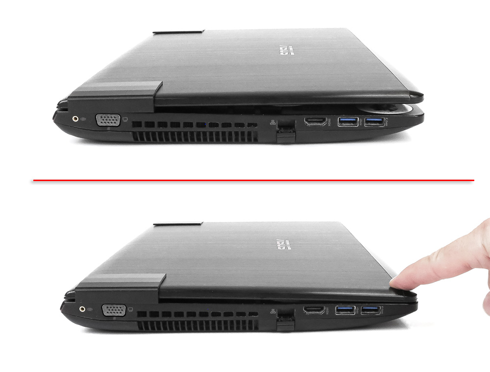 Ze względu na konstrukcję notebooka oraz grubość klipsów, po zamknięciu laptopa może pozostać niewielkie "niedomknięcie", które nie wpływa na użytkowanie urządzenia (lekki docisk ręką domyka klapę do końca).