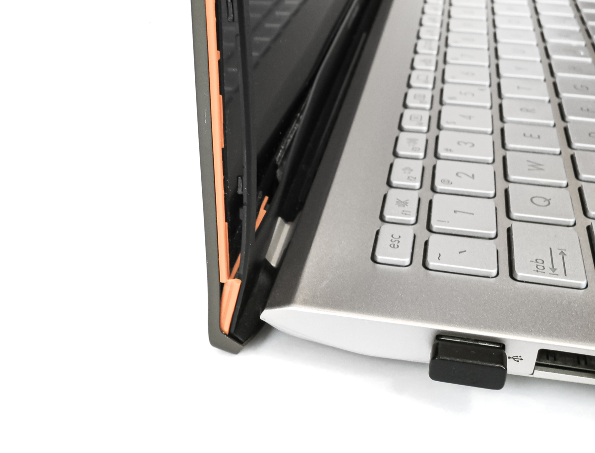 - Ze względu na konstrukcję notebooka oraz grubość klipsów, po zamknięciu laptopa może pozostać niewielkie "niedomknięcie", które nie wpływa na użytkowanie urządzenia (lekki docisk ręką domyka klapę do końca).