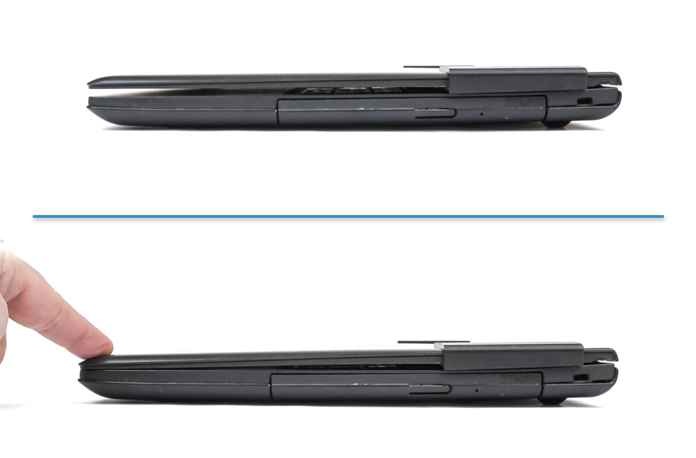 Ze względu na konstrukcję notebooka oraz grubość klipsów, po zamknięciu laptopa może pozostać niewielkie "niedomknięcie", które nie wpływa na użytkowanie urządzenia (lekki docisk ręką domyka klapę do końca).