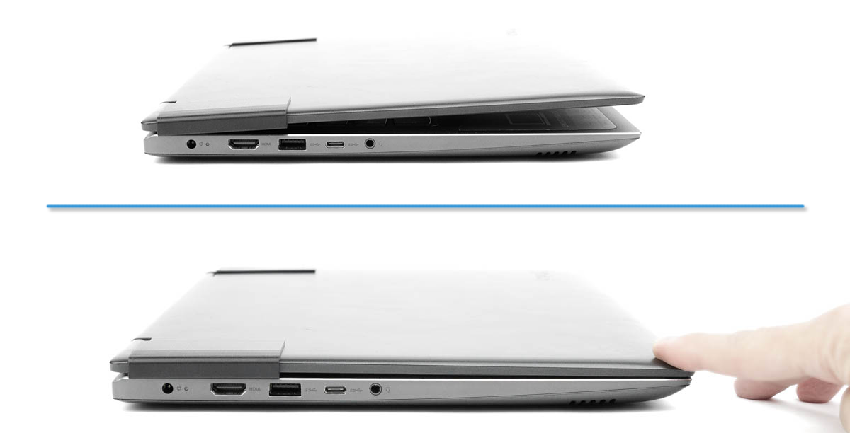 Ze względu na konstrukcję notebooka oraz grubość klipsów, po zamknięciu laptopa pozostaje niewielkie "niedomknięcie", które nie wpływa na użytkowanie urządzenia.