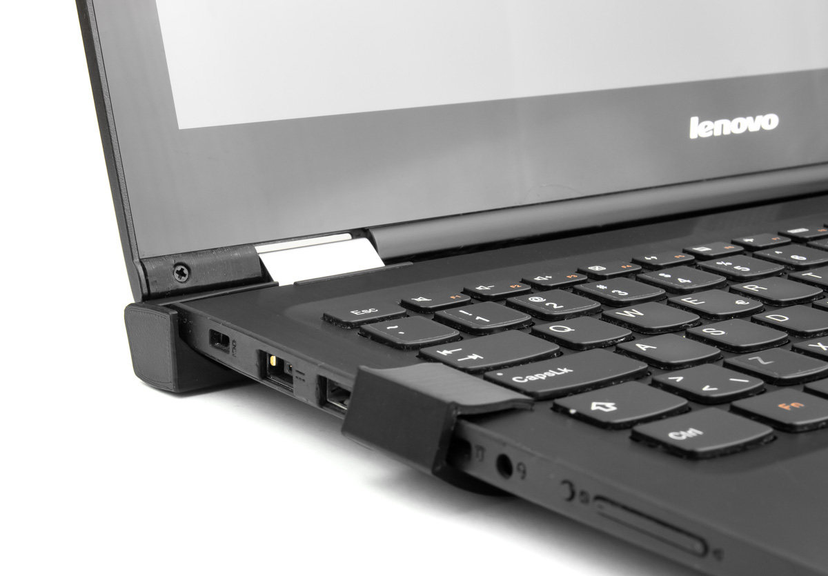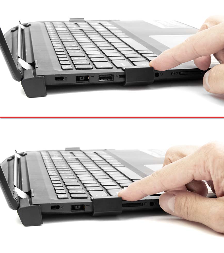 Można je swobodnie przesuwać, dzięki czemu nie jest blokowany dostęp do portów w bocznej części laptopa.
