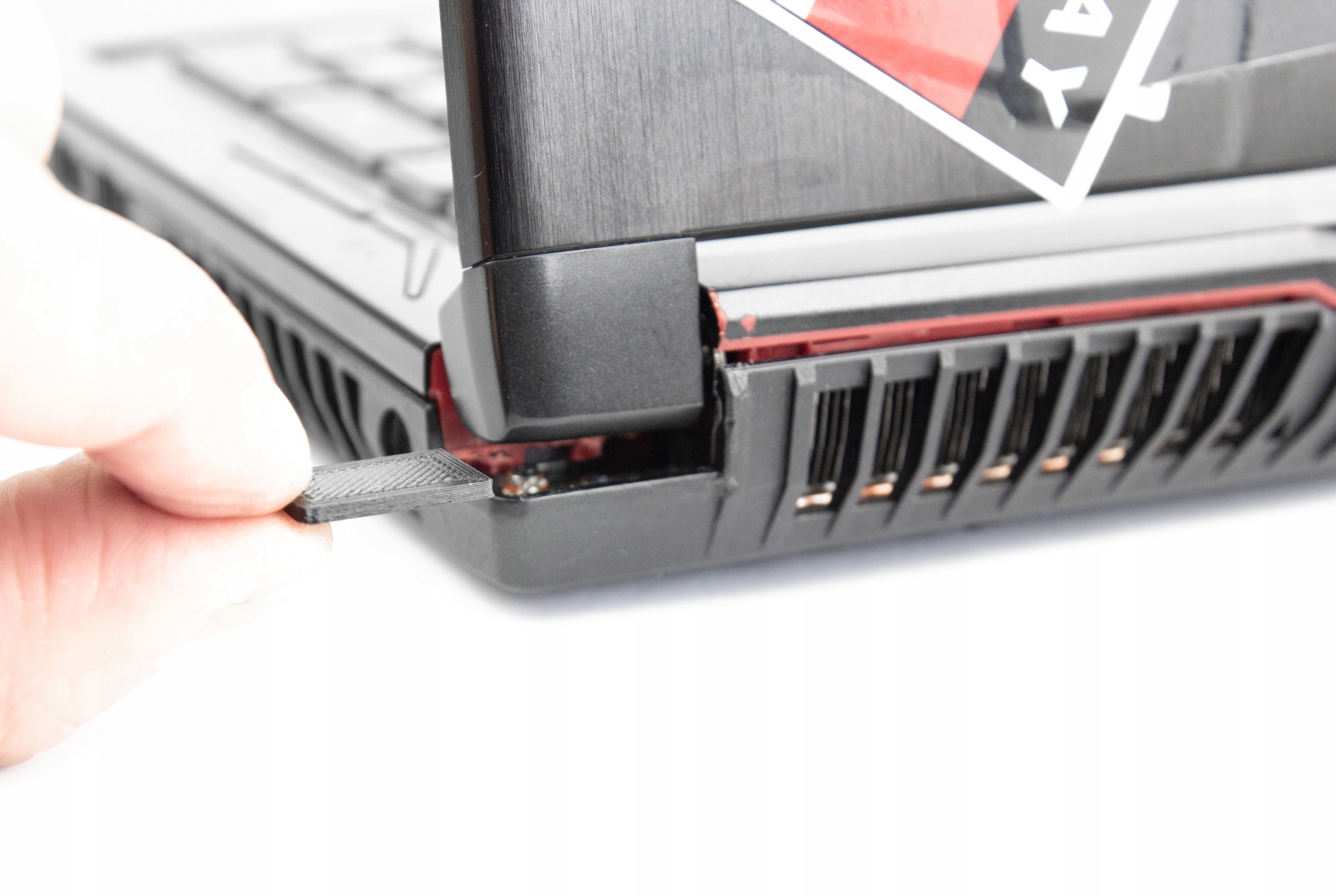 Laptopa nie kleimy (klej i tak puści), nie przeprowadzamy żadnych innych napraw, zakładamy tylko specjalne klipsy i znów normalnie używamy laptopa.