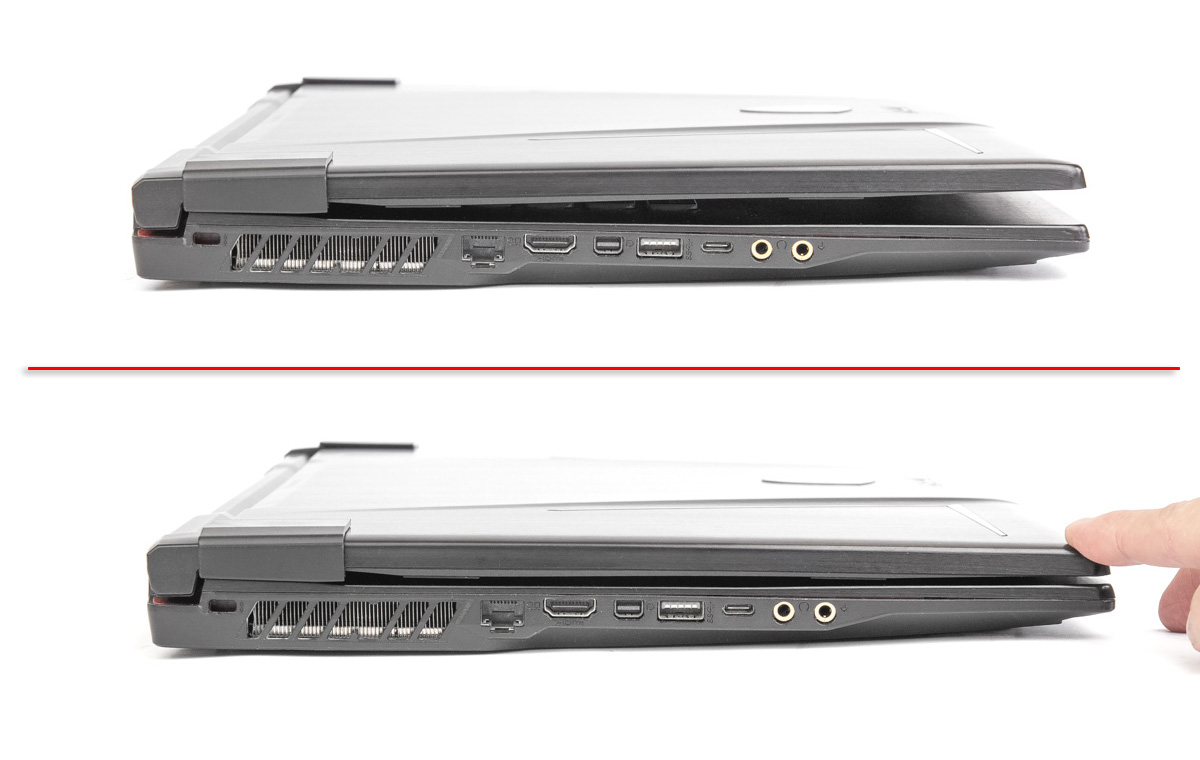 Ze względu na konstrukcję notebooka oraz grubość klipsów, po zamknięciu laptopa może pozostać niewielkie "niedomknięcie", które nie wpływa na użytkowanie urządzenia (lekki docisk ręką domyka klapę do końca).