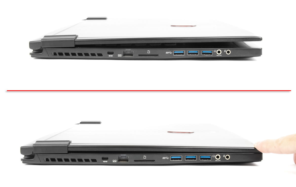 Ze względu na konstrukcję notebooka oraz grubość klipsów, po zamknięciu laptopa może pozostać niewielkie "niedomknięcie", które nie wpływa na użytkowanie urządzenia (lekki docisk ręką domyka klapę do końca).