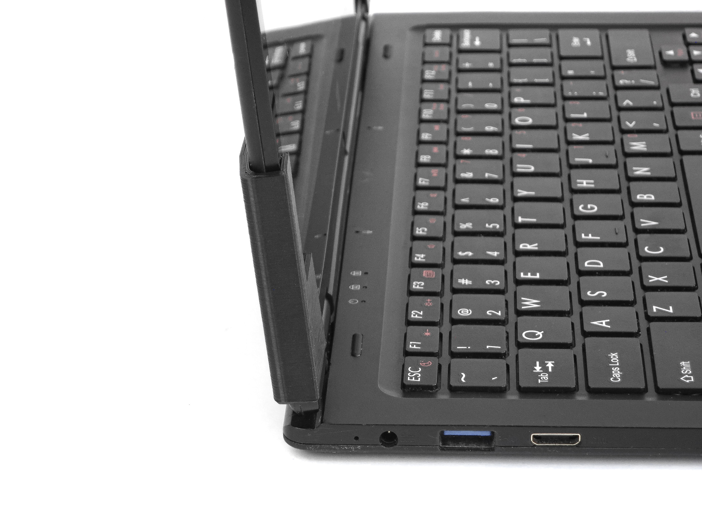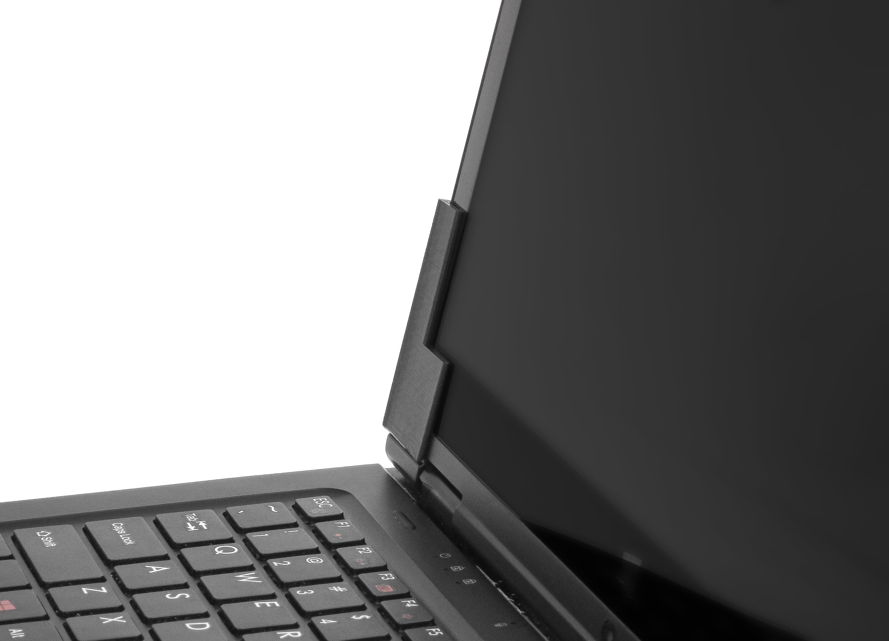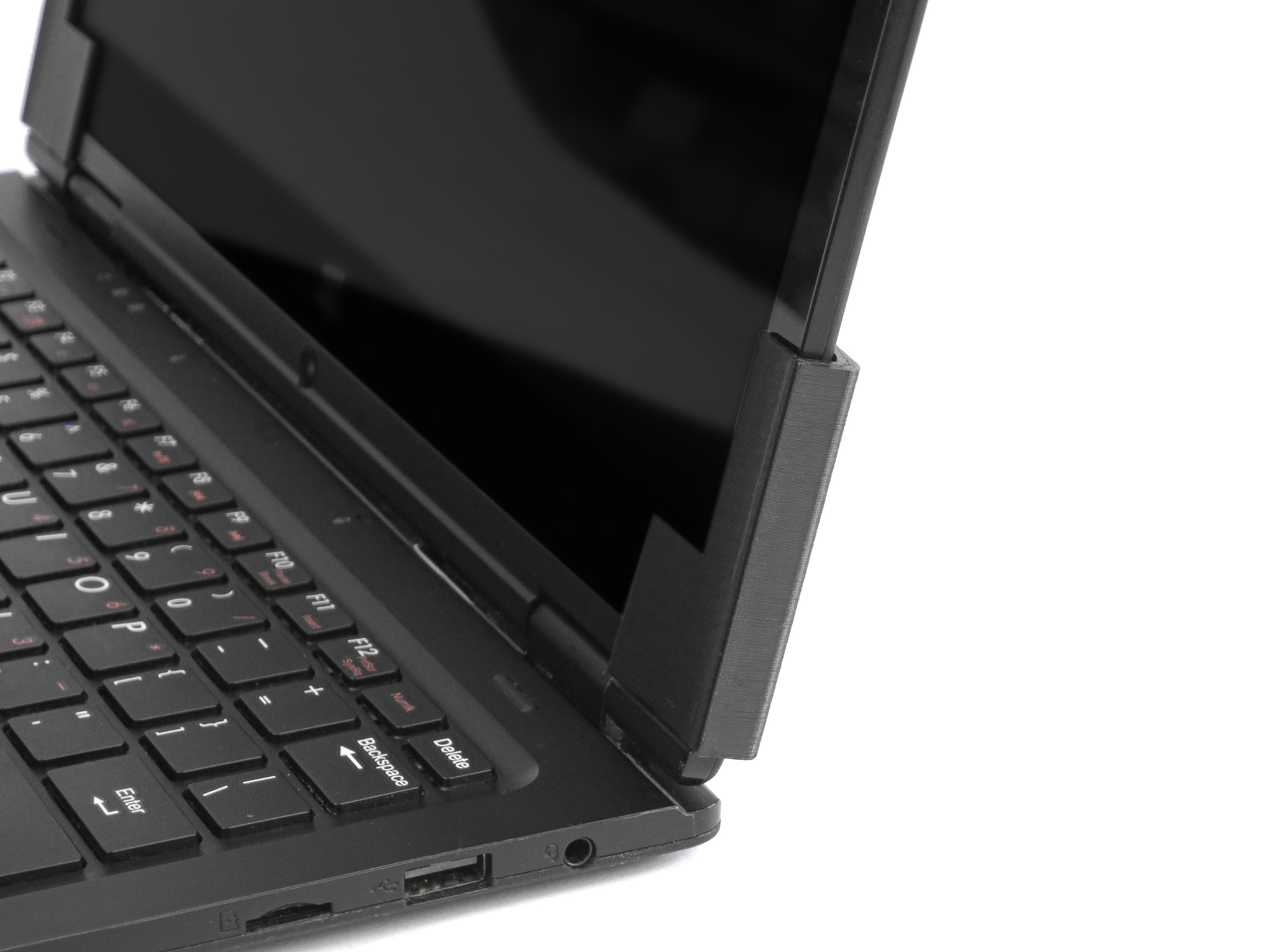 Ze względu na grubość klipsów oraz kształt obudowy, notebook z zamontowanymi klipsani nie otwiera sie do końca do pozycji "TABLET" - przykład pokazany na zdjęciu.