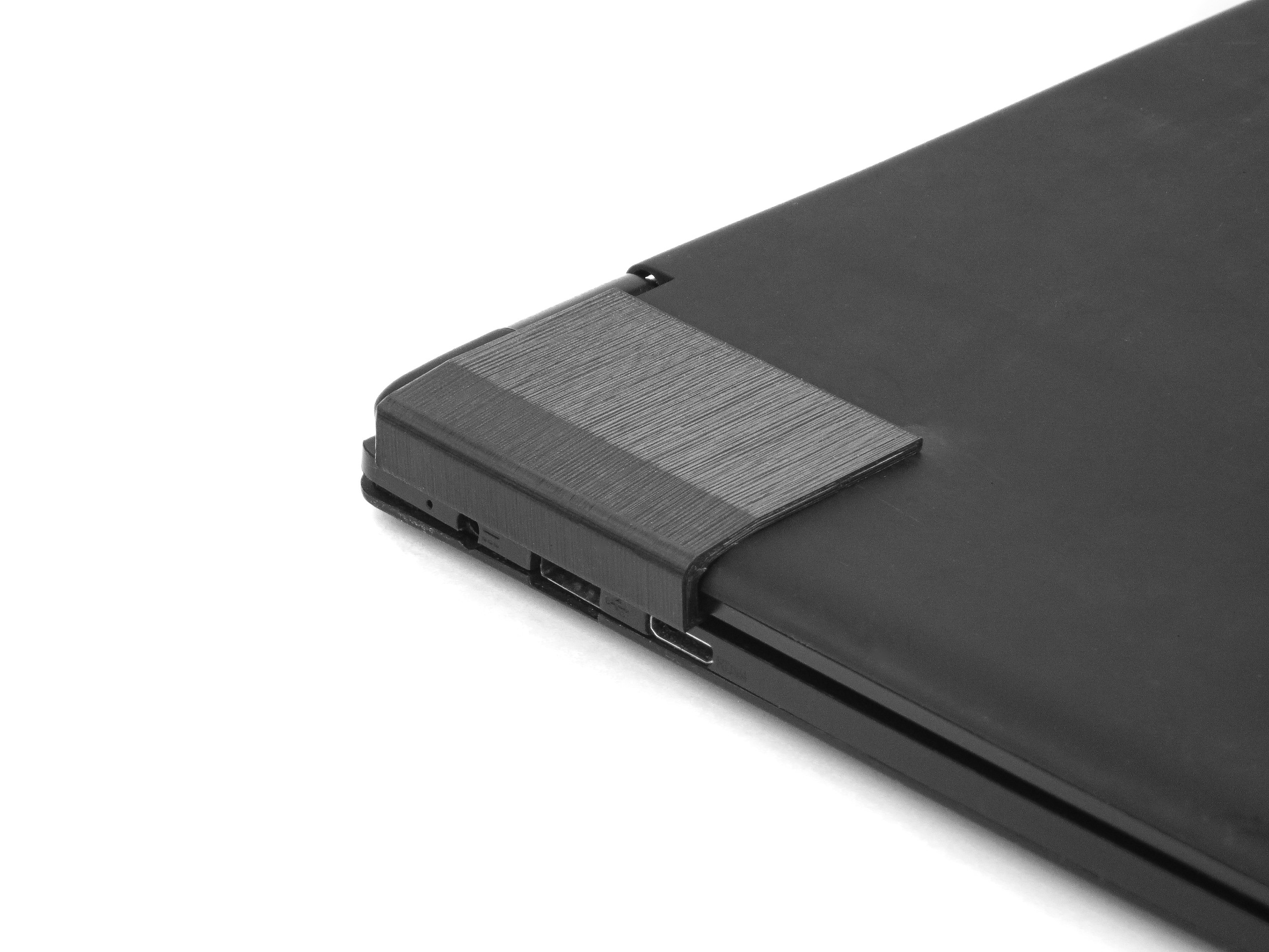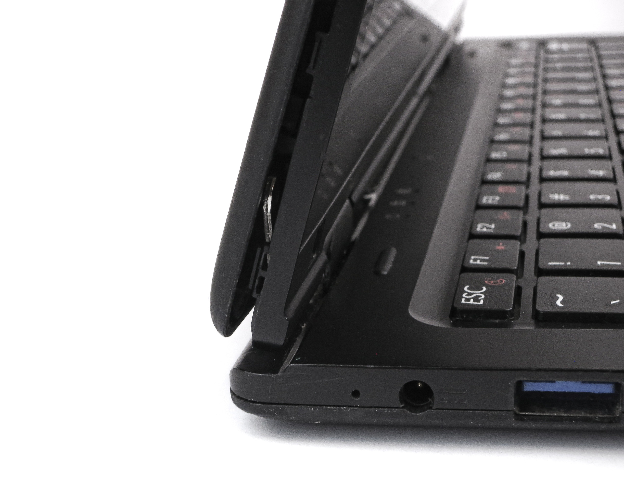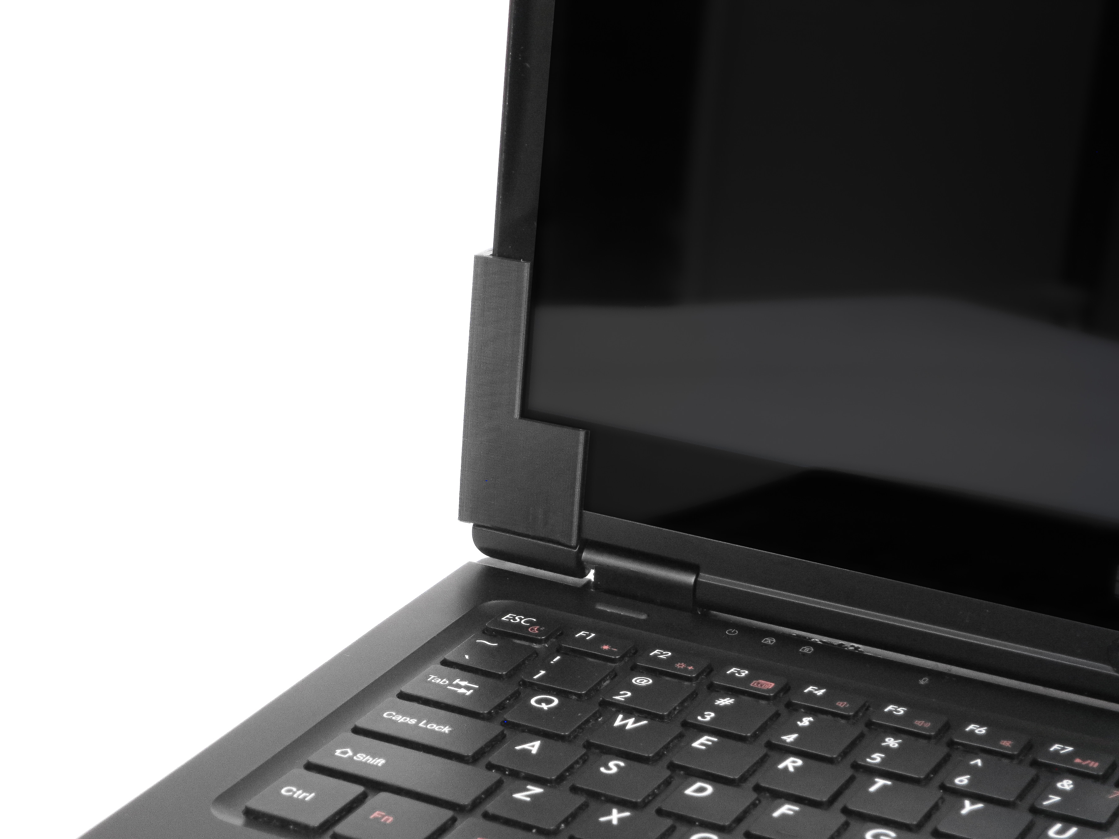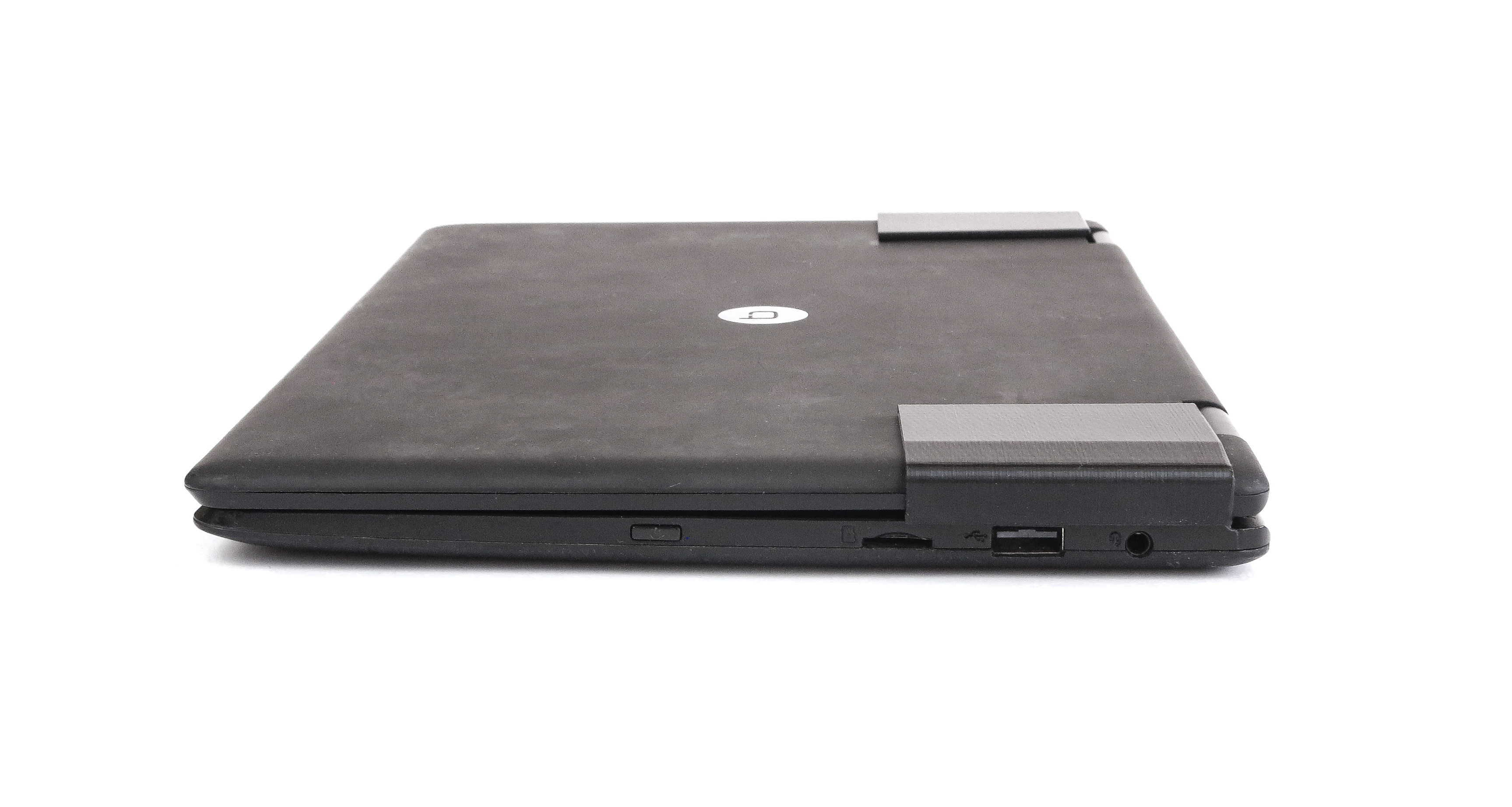 Ze względu na grubość klipsów oraz kształt obudowy, notebook z zamontowanymi klipsani nie otwiera sie do końca do pozycji "TABLET" - przykład pokazany na zdjęciu.